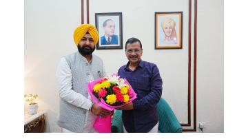 Punjab Cabinet Minister Hardeep Singh Mundian today met Aam Aadmi Party’s National Convener Arvind Kejriwal and Punjab in-charge Manish Sisodia in New Delhi and congratulated them on their acquittal in a false case.