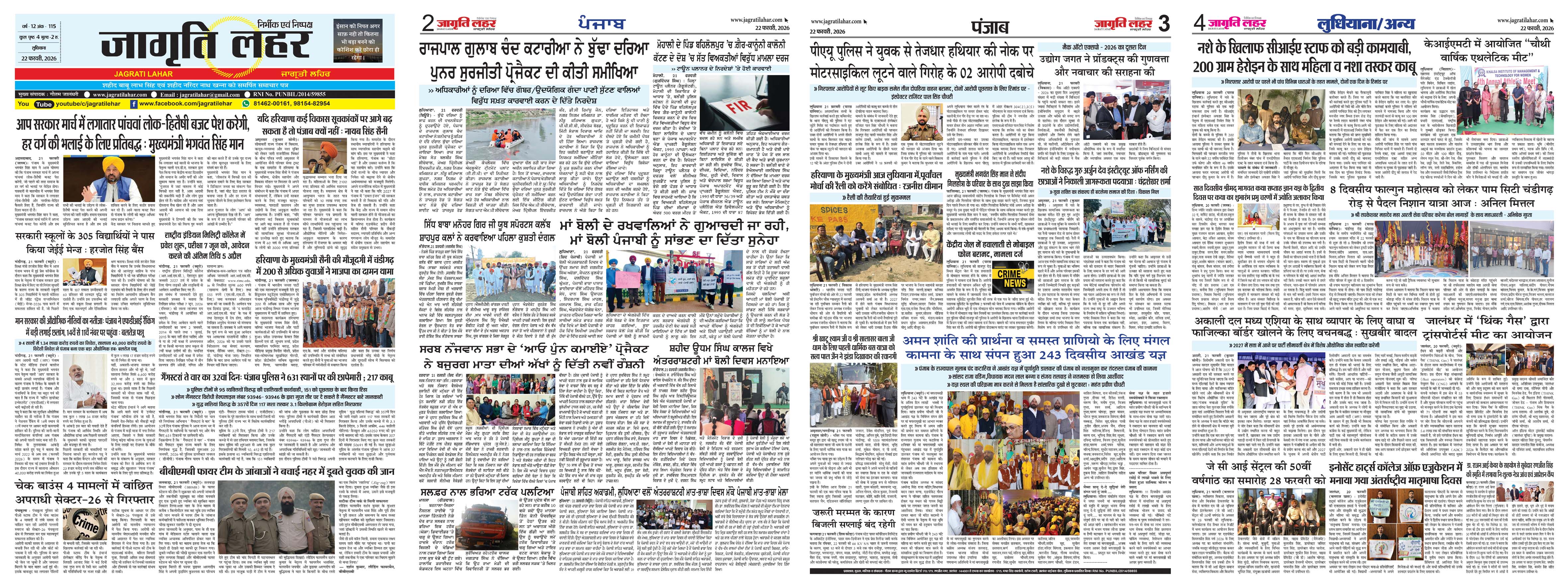 Jagrati Lahar is an English, Hindi and Punjabi language news paper as well as web portal. Since its launch, Jagrati Lahar has created a niche for itself for true and fast reporting among its readers in India.