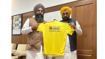 पंजाब के मुख्यमंत्री सरदार भगवंत सिंह मान ने आज शहीद-ए-आज़म भगत सिंह नेशनल मैराथन की आधिकारिक टी-शर्ट जारी की। यह मैराथन नशे के खिलाफ चल रही मुहिम को और मजबूत करने तथा पंजाब की युवा पीढ़ी को स्वस्थ और खेलों की ओर प्रेरित करने की दिशा में एक बड़ा कदम है। इस अवसर पर उपस्थित पंजाब विधानसभा के डिप्टी स्पीकर स जय कृष्ण सिंह रोड़ी ने बताया कि मुख्यमंत्री स भगवंत सिंह मान द्वारा चलाए जा रहे “नशों विरुद्ध युद्ध” अभियान की निरंतरता में पंजाब की युवा पीढ़ी को बचाने, युवाओं के भविष्य को सुनहरा बनाने और राज्य को फिर से हंसता-खेलता एवं रंगला बनाने के उद्देश्य से 22 मार्च 2026 को फुटबॉल की नर्सरी के रूप में प्रसिद्ध माहिलपुर (गढ़शंकर), जिला होशियारपुर में यह विशाल मैराथन आयोजित की जा रही है।