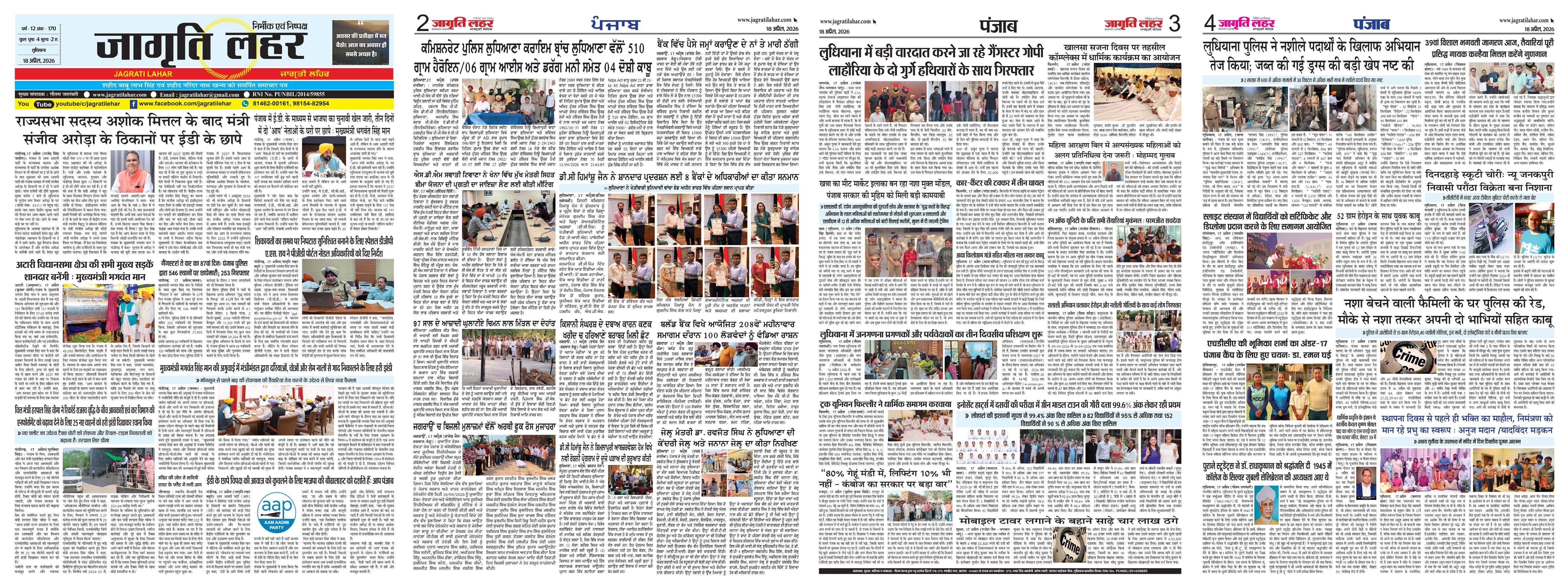 Jagrati Lahar is an English, Hindi and Punjabi language news paper as well as web portal. Since its launch, Jagrati Lahar has created a niche for itself for true and fast reporting among its readers in India.