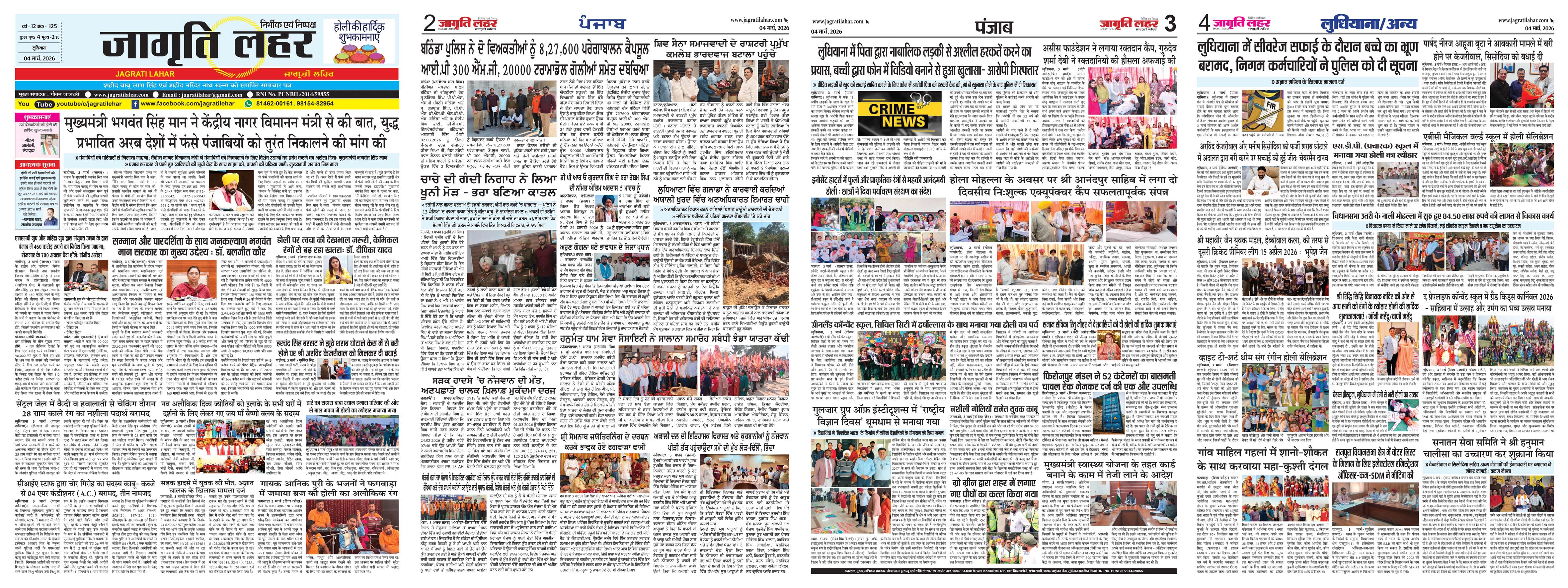 Jagrati Lahar is an English, Hindi and Punjabi language news paper as well as web portal. Since its launch, Jagrati Lahar has created a niche for itself for true and fast reporting among its readers in India.