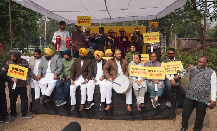 *ਦਲਿਤਾਂ ਅਤੇ ਮਿਹਨਤਕਸ਼ਾਂ ਦਾ ਮਜ਼ਾਕ ਉਡਾਉਣ ਤੇ ਕਾਂਗਰਸ ਖ਼ਿਲਾਫ਼ ਬੈਂਡ-ਵਾਜਿਆਂ ਨਾਲ ਆਪ ਦਾ ਜ਼ੋਰਦਾਰ ਪ੍ਰਦਰਸ਼ਨ*