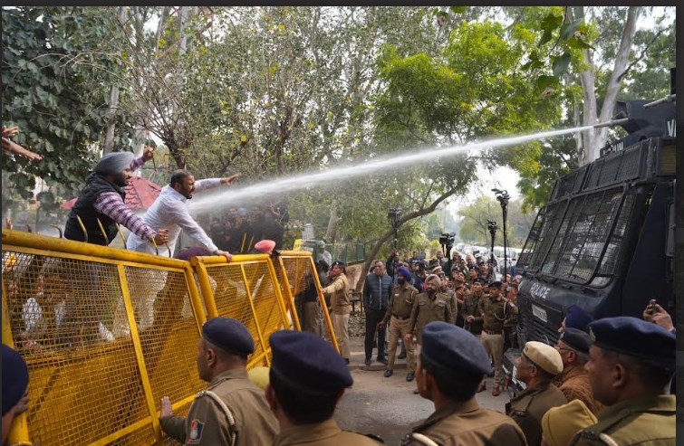 *'ਆਪ' ਆਗੂਆਂ ਅਤੇ ਪੁਲਿਸ ਵਿਚਾਲੇ ਹੋਈ ਝੜਪ, ਭੀੜ ਨੂੰ ਰੋਕਣ ਲਈ ਪੁਲਿਸ ਨੇ ਵਾਟਰ ਕੈਨਨ ਦੀ ਵਰਤੋਂ ਕੀਤੀ, ਕਈ ਆਗੂ ਤੇ ਵਰਕਰ ਜ਼ਖ਼ਮੀ*
